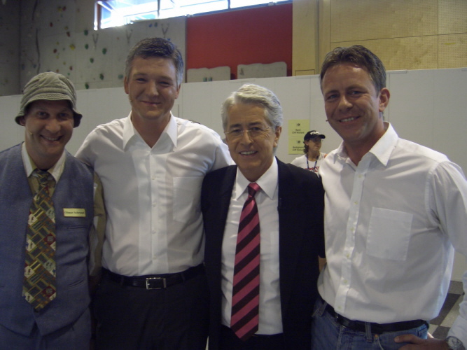 Kurz vor der Live Sendung wünschte Frank Elstner seinen Witzbolden "Toi,toi,toi"