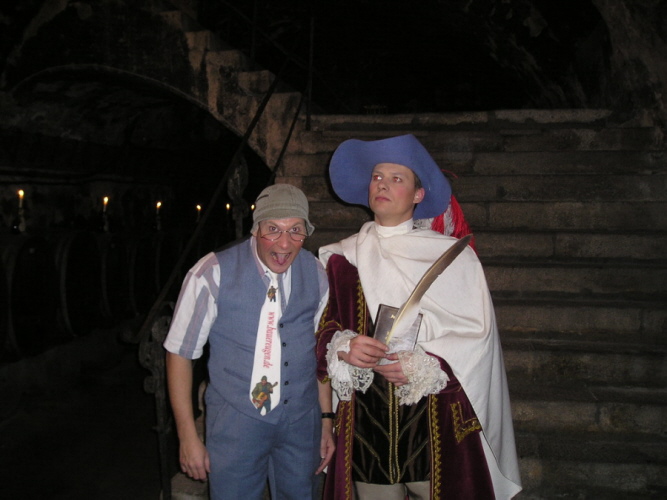 Zwei Freunde, Otmar Schmelzer und Otmar Schraud, bei der Aufzeichnung der "Närrischen Weinprobe" des BR